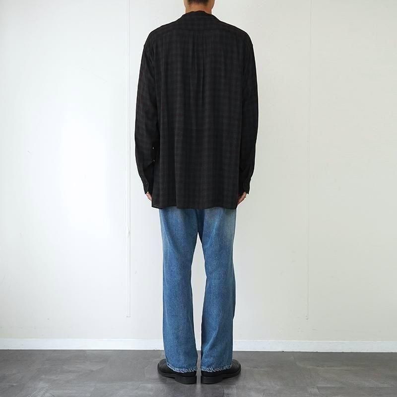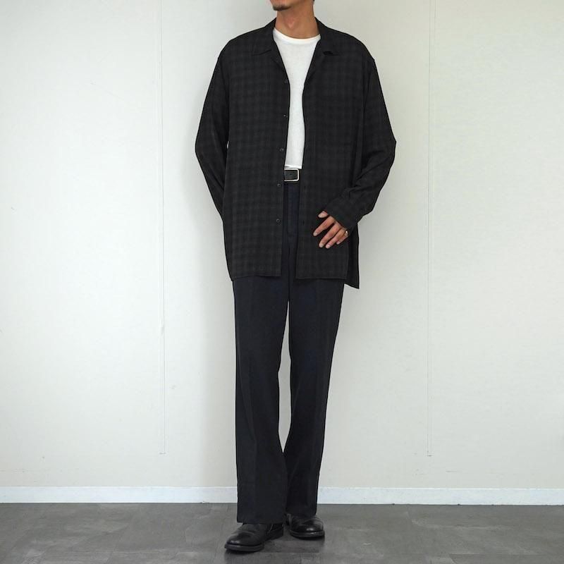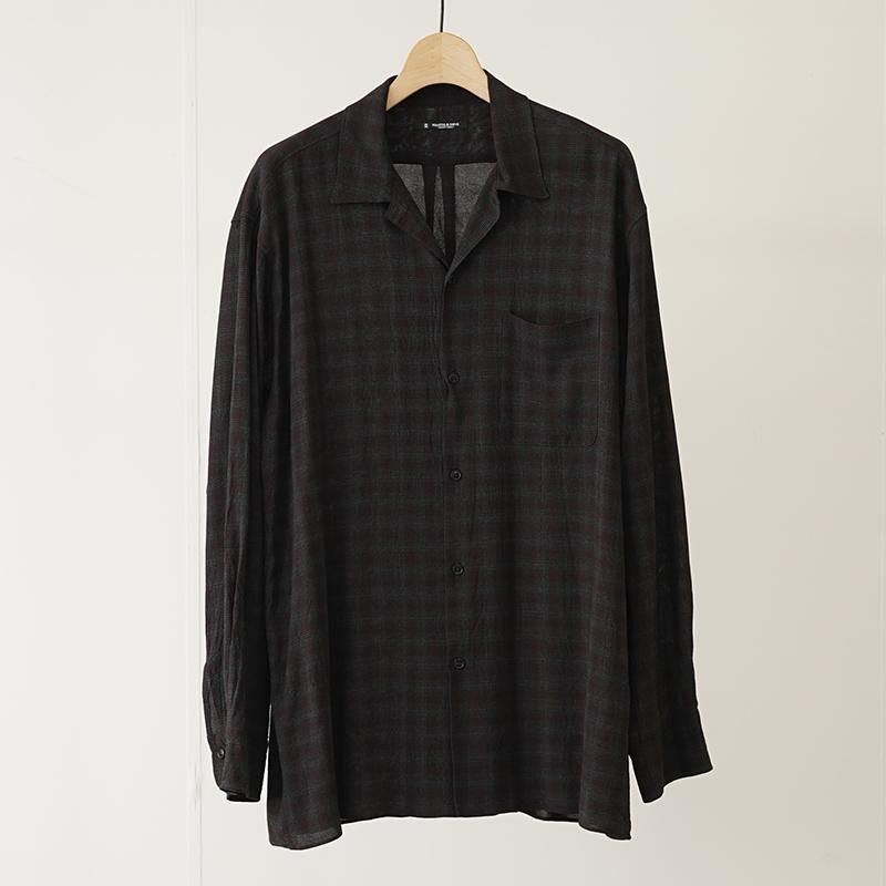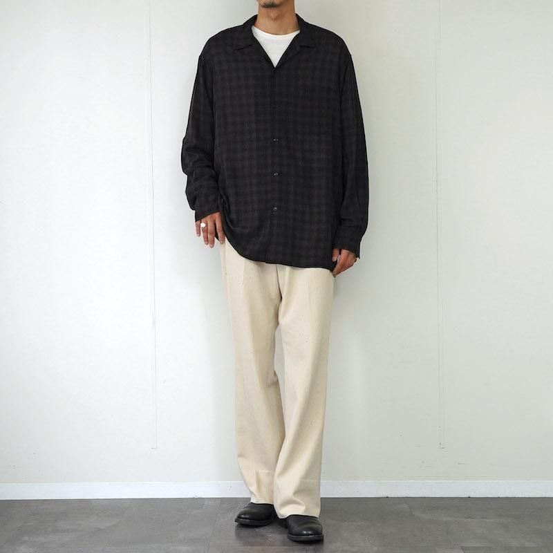 強撚のレーヨン100%。しっかりとしたドライな質感でありながら、レーヨンならではの柔らかな落ち感と滑らかさも感じられる上質な素材です。 上質なレーヨンの上品さと、リラックス感あるオープンカラー仕様で、くつろぎときちんと感の両立を叶えた一着。 チェック柄も主張しすぎず、肩の力が抜けた大人なスタイルにぴったりです モデル身長184cm 体重64kg 着用サイズ2 SIZE(cm) 1:着丈78 肩幅53 身幅61 袖丈61 2:着丈79.5 肩幅55 身幅62 袖丈63 3:着丈82 肩幅56 身幅64 袖丈66 QUALITY RAYON 100%