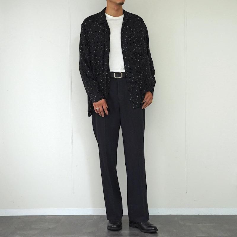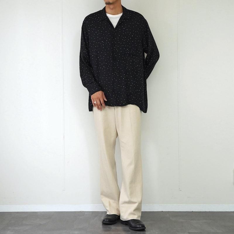 ドライな質感でありながら、レーヨンならではの柔らかな落ち感と滑らかさも感じられる素材。さりげなくヘリンボーンで仕立てられています。 上質な素材の着心地に加え、ドット柄の繊細なアクセント。ドットの大きさもさりげなくランダムになっており、より遊び心を感じさせます。 モデル身長184cm 体重64kg 着用サイズ3 SIZE(cm) 1:着丈72 肩幅50 身幅60 袖丈58 2:着丈73 肩幅50 身幅61 袖丈60 3:着丈75 肩幅53 身幅62 袖丈62 QUALITY RAYON 100%