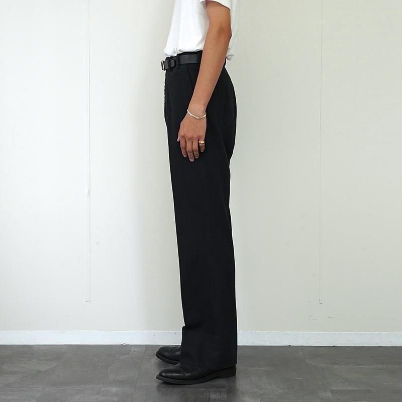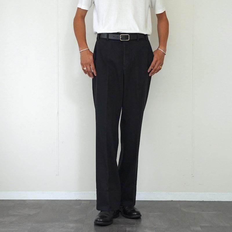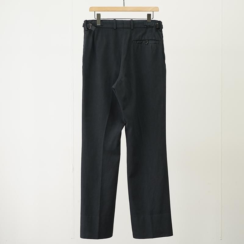 クタッとした柔らかな質感ながら、綾目はクッキリと立っている独特な風合い。生成りには油染みのような加工を所々に施し古着のように仕上げています。ブランドらしい品の良さと無骨さがバランスよく溶け込んだ1着に。 今回は綿100%のコットンツイル。 程よくゆとりを持たせた微フレアシルエットと柔らかな落ち感のある生地が、日常に寄り添いながら静かに主張するボトムスとなっています。 モデル身長184cm 体重64kg 着用サイズ2 SIZE(cm) 1:ウエスト79 股上32 股下81 ワタリ28 裾幅25 2:ウエスト82 股上32 股下83 ワタリ30裾幅25.5 QUALITY COTTON 100%