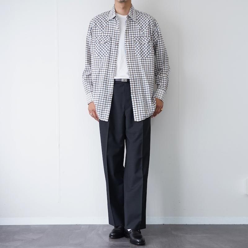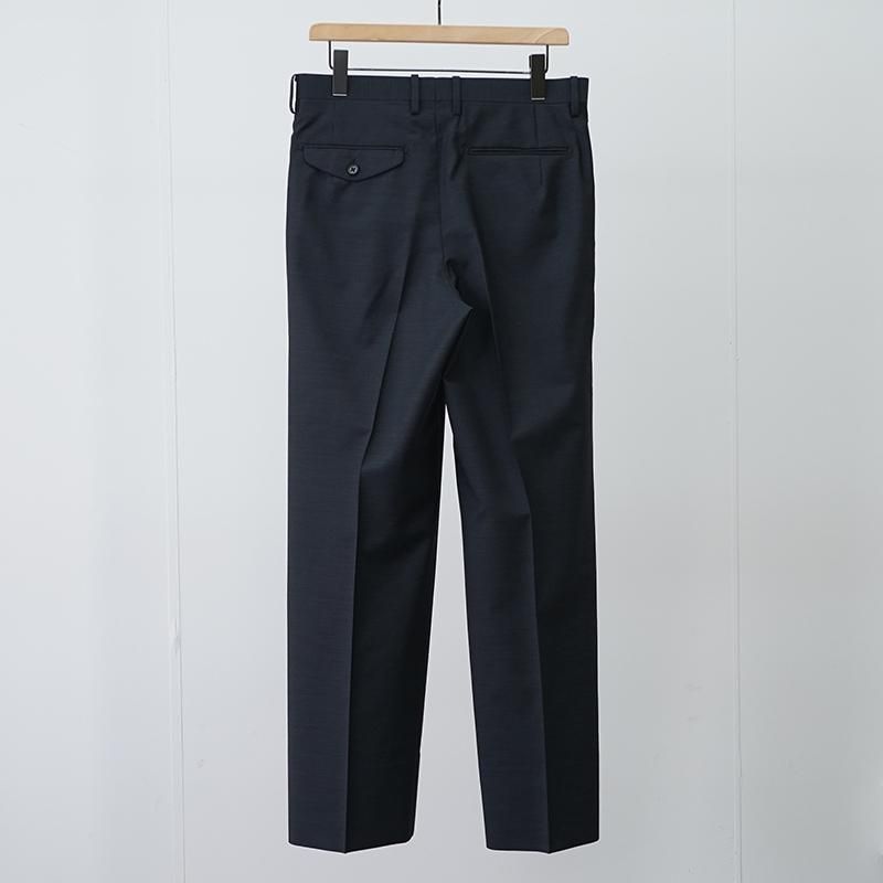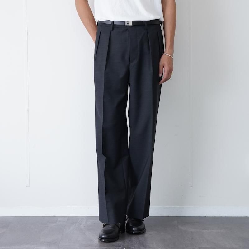 インタックが施された2プリーツの腰回りはすっきりとシャープに仕立てられ、裾まで真っ直ぐ落ちるストレートラインが美しいシルエットを形成。