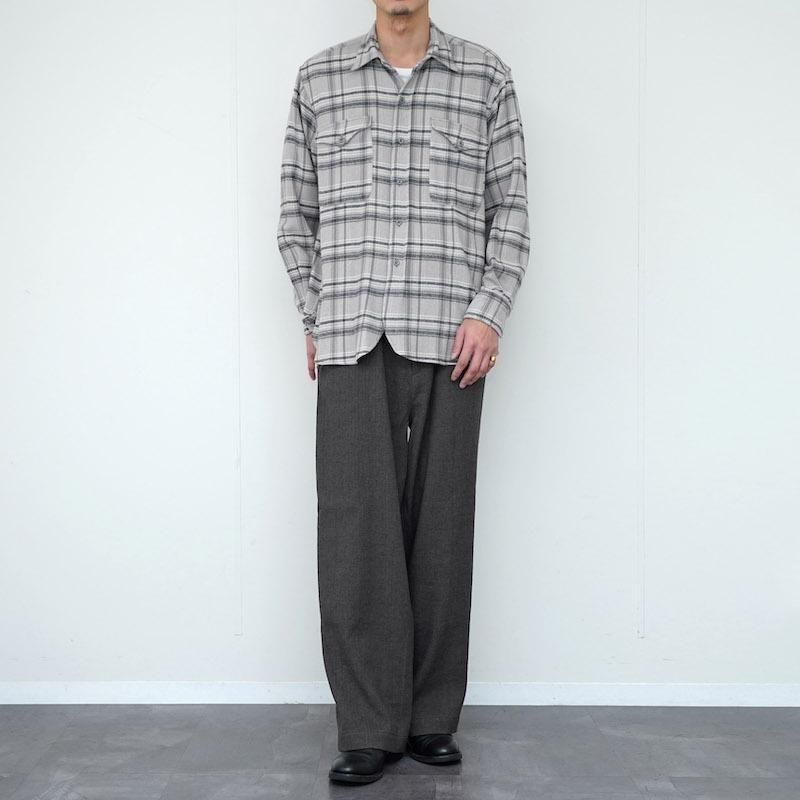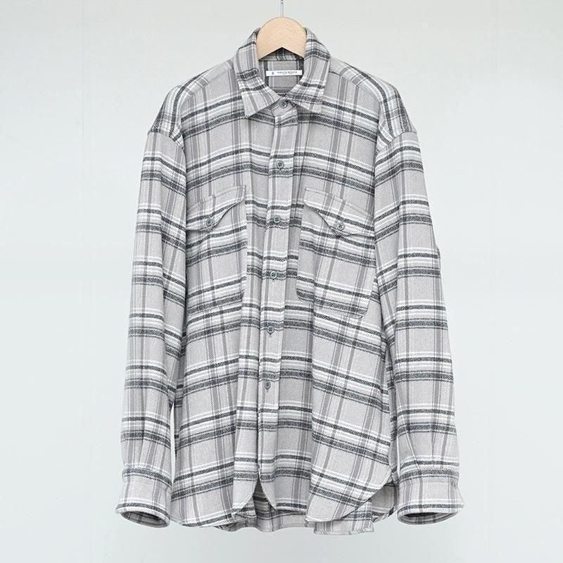 カシミヤ混の上質なネル素材で仕立てたシャツ。 繊維の細かさが生むしなやかな肌触りと、控えめで上品な起毛感が特徴で、着るごとに身体になじむような柔らかさを感じさせます。 適度な厚みを確保しつつも軽やかに整えた生地は、秋冬のインナーとしてはもちろん、羽織りとしても成立する実用性を備えています。起毛を抑えたネル仕上げにより、カジュアルに寄り過ぎない落ち着いた佇まいを実現。単品での着用でも品良くまとまり、幅広いスタイリングに調和します。 カッティングはリラックスしたシルエットを基調に、ショルダーラインと身幅のバランスを丁寧に調整。前立てやカフスの意匠を抑えたミニマルなディテールワークにより、シャツ本来の佇まいを損なわずに現代的な洗練を加えています。高級感のあるボタンや控えめなステッチワークが全体の品格を引き上げます。 保温性の高いカシミヤ混素材は、寒い季節でも快適な着心地をもたらし、ニットやジャケットとのレイヤードにも自然に馴染みます。シャツ一枚での着こなしはもちろん、タートルネックや薄手のニット、コートのインナーとして組み合わせることで、季節の変わり目から真冬まで長く活躍する一着です。 上質な素材感と洗練されたディテールが融合した、MAATEE&SONSらしい上品かつ実用的なネルシャツ。長く育てていきたいワードローブの中心になる一枚です。 モデル身長184cm 体重64kg 着用サイズ2 SIZE(cm) 2:着丈79 肩幅51 身幅62 袖丈63 QUALITY CASHEMERE 100%