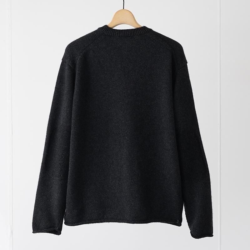 編み地の“表情”に自然な変化をつくり出し、シンプルなシルエットながら印象に残る佇まいに仕上げています。
