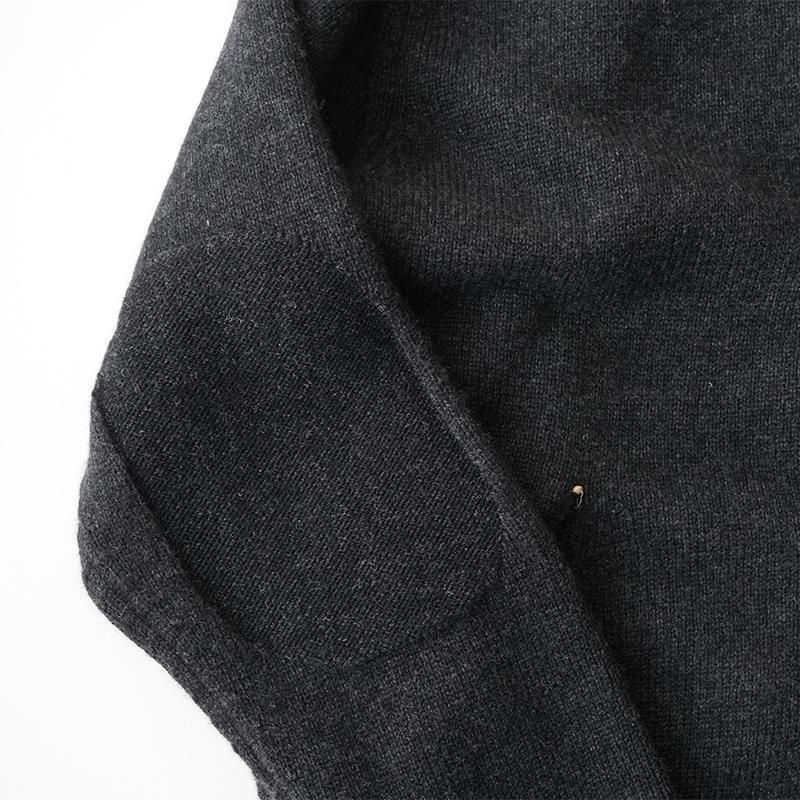 表側にはカシミヤ100%、裏側にはウール100%を配した二重構造の編み地は、ひょっとこ編みの特徴である“表と裏の質感差”をはっきり感じられる構成。