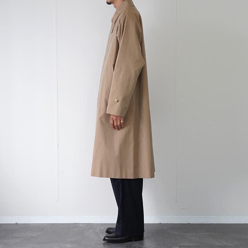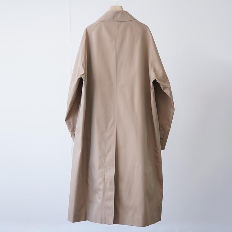 しっかりとオーバーサイズで、1枚袖ですっと体に馴染んでいくようなパターンメイキング。中にしっかり着込んで差し色を入れたり、スタイリングが楽しくなるコートです。 素材にはコットン100%の撥水加工されたシャンブレーを使用。少し玉虫に見えるのも特徴的です。 比較的軽いウエイトの為長い季節着用いただけます。 モデル身長184cm 体重64kg 着用サイズ3 SIZE(cm) 2:着丈114 身幅65 裄丈79 3:着丈117 身幅67 裄丈82 QUALITY COTTON100%