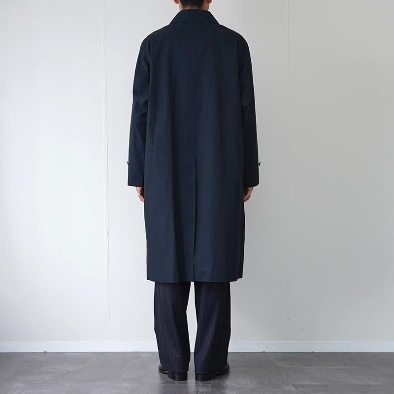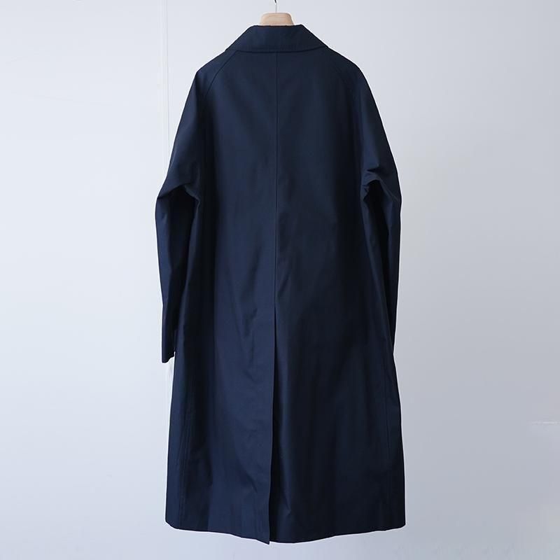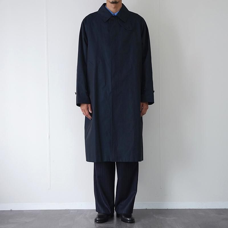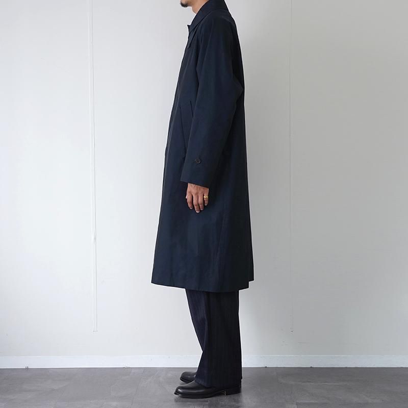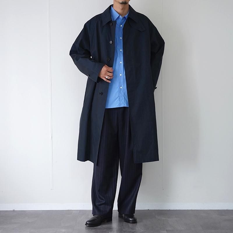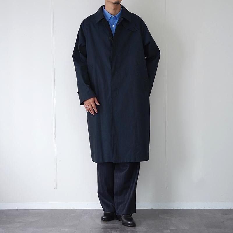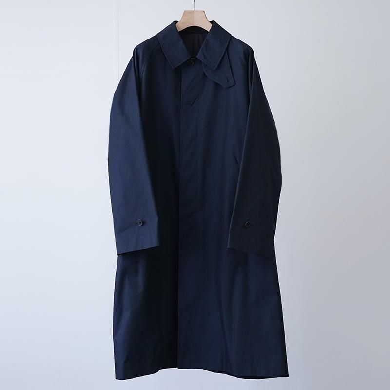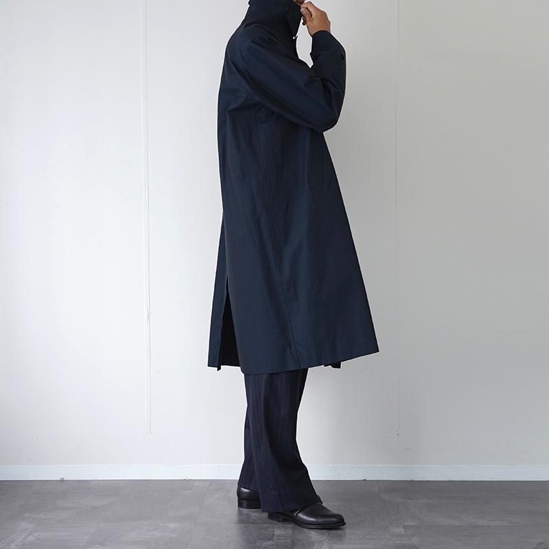 しっかりとオーバーサイズで、1枚袖ですっと体に馴染んでいくようなパターンメイキング。中にしっかり着込んで差し色を入れたり、スタイリングが楽しくなるコートです。 素材にはコットン100%の撥水加工されたシャンブレーを使用。少し玉虫に見えるのも特徴的です。 比較的軽いウエイトの為長い季節着用いただけます。 モデル身長184cm 体重64kg 着用サイズ3 SIZE(cm) 2:着丈114 身幅65 裄丈79 3:着丈117 身幅67 裄丈82 QUALITY COTTON100%