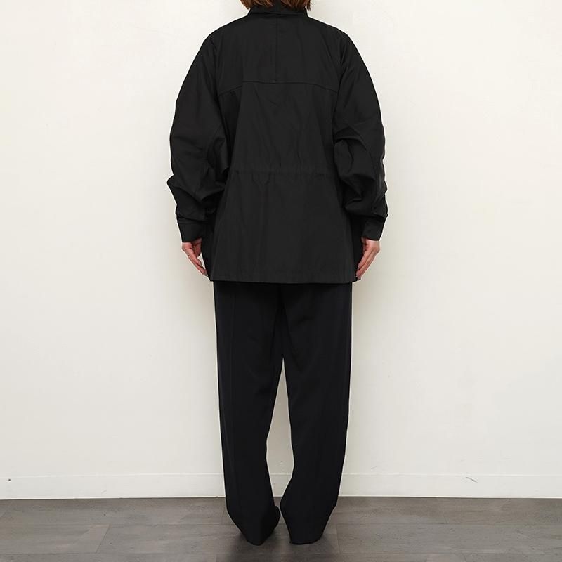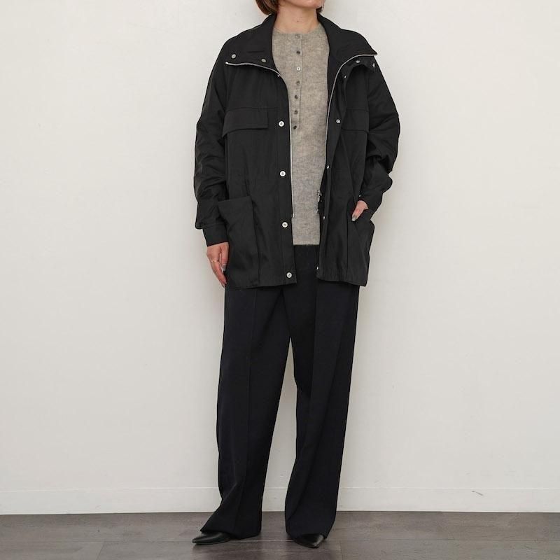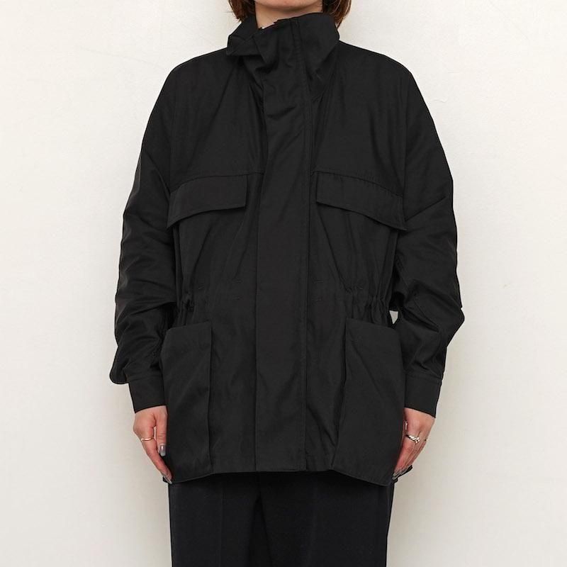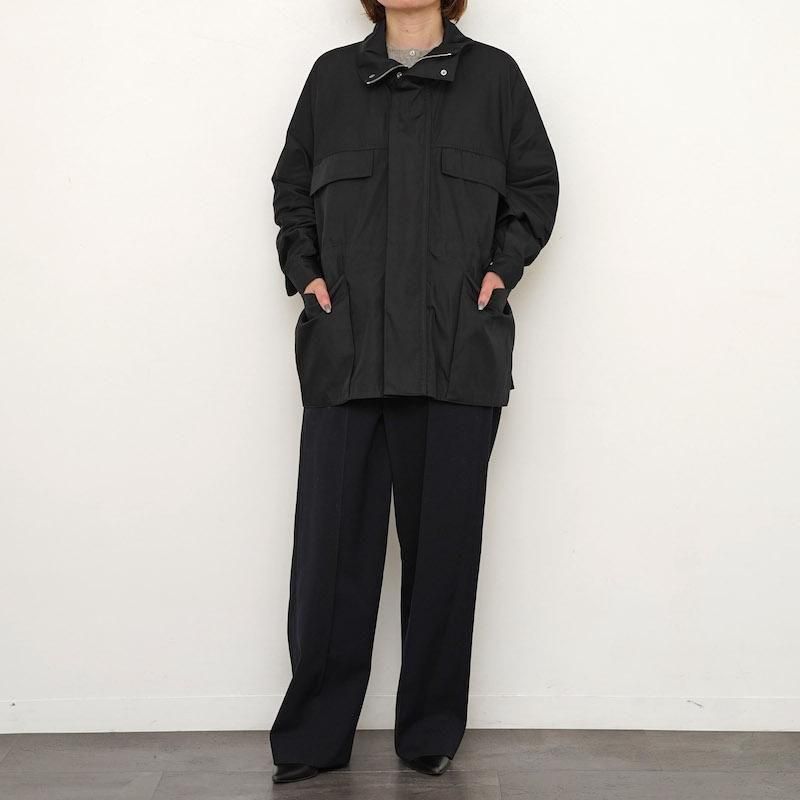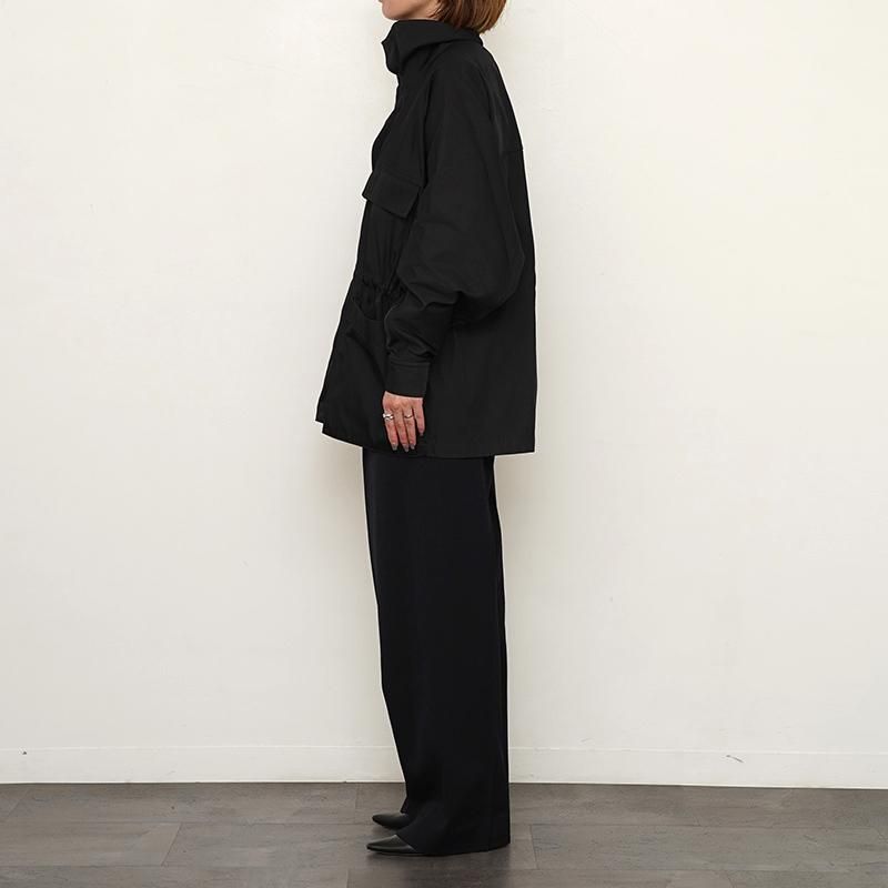 経緯にポリエステルのマイクロファイバーを、ドイツ製織機で高密度に織り上げた二重織物。マウンテンパーカーの構造がベースですが、ウェストのドロストなど着こなしで女性らしく着ることもできます。 モデル身長155cm 着用サイズ0 SIZE(cm) 0:着丈前69 着丈後74 身幅68 裄丈73 QUALITY POLYESTER100%