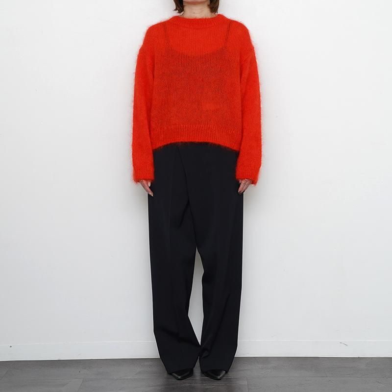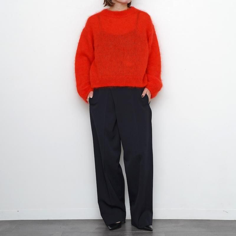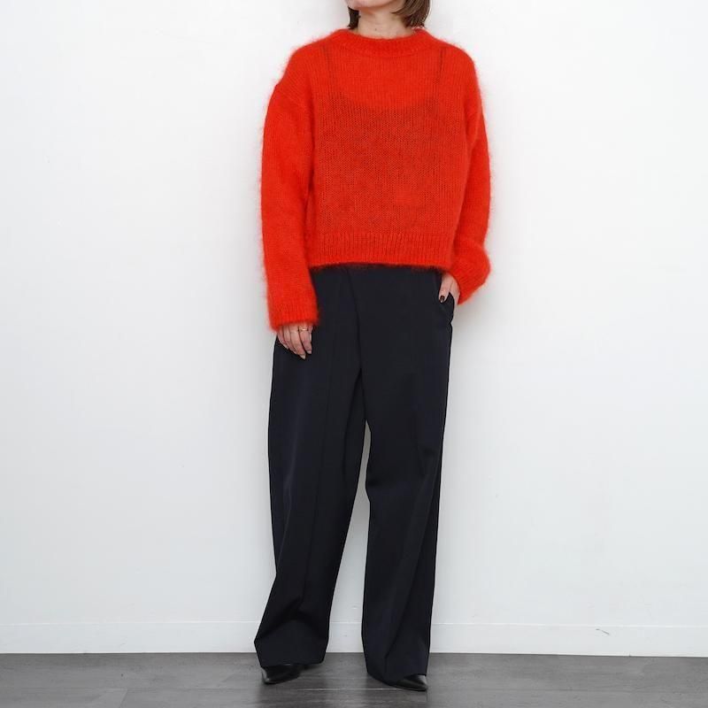 キッドモヘアとシルクが織り成す信じられないほどの柔らかさと、繊維の自然な風合いが最も愛らしい側面をエレガントに表現したものです。あえてリブにしまりを持たせずエフォートレスなムードに仕上げたニットプルオーバー。 モデル身長155cm 着用サイズ1 SIZE(cm) 1:着丈51 肩幅52 身幅57 袖丈50 QUALITY MOHAIR70% SILK30%