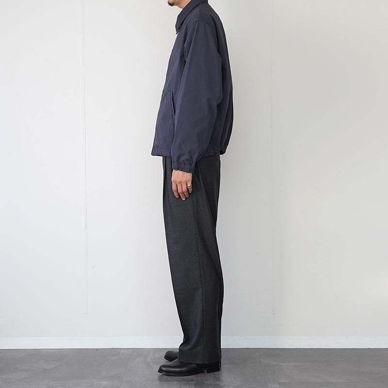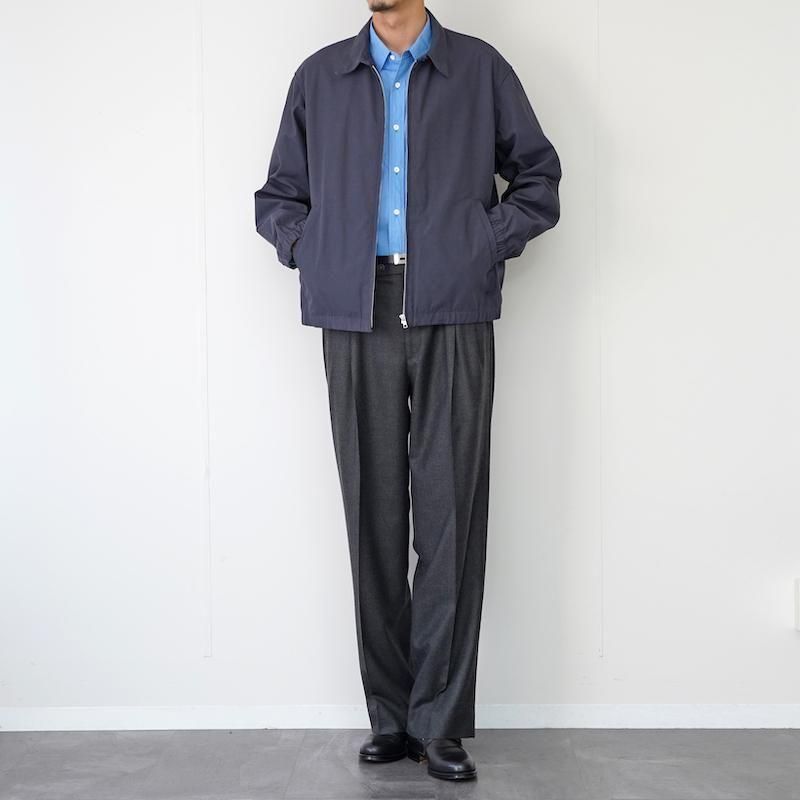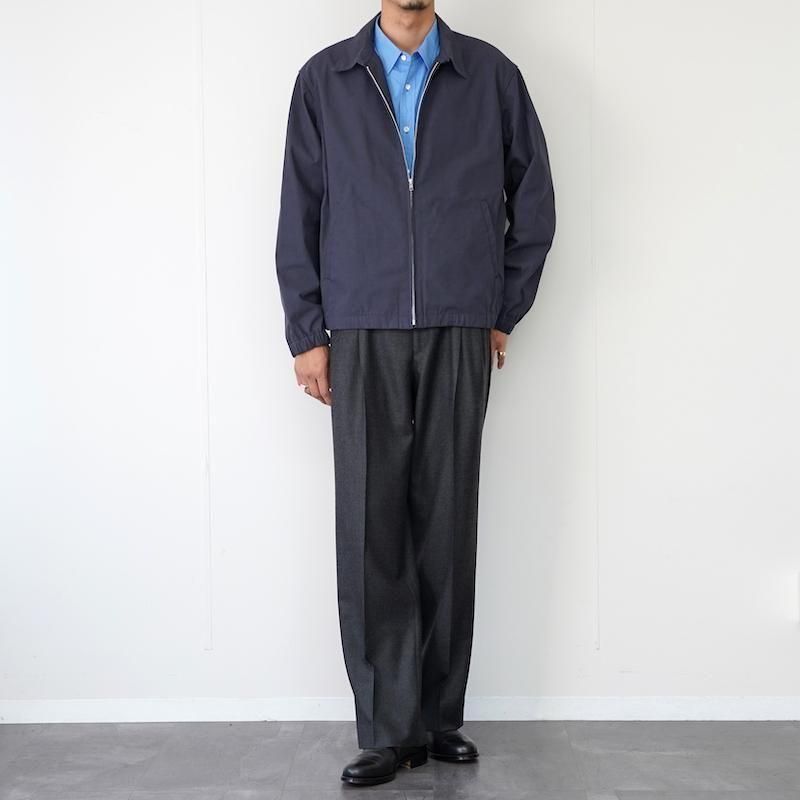 リサイクルポリエステルとオーガニックコットンを使用した高密度の強撚ツイルのため、軽くすっきりした風合い。古着をベースとし、アジャスターを追加したスウィングトップです。 モデル身長184cm 体重64kg 着用サイズL SIZE(cm) M:着丈65 肩幅48 身幅62 袖丈61 L:着丈69.5 肩幅52 身幅64 袖丈63 QUALITY COTTON50% POLYESTER50%