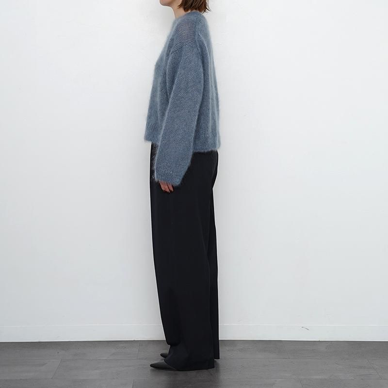 キッドモヘアとシルクが織り成す信じられないほどの柔らかさと、繊維の自然な風合いが最も愛らしい側面をエレガントに表現したものです。あえてリブにしまりを持たせずエフォートレスなムードに仕上げたニットプルオーバー。