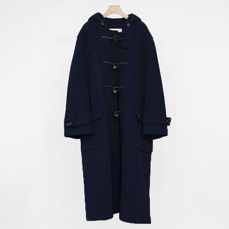 英国ダッフルコートの代表格として知られる「THE MONTGOMERY」が手掛けるクラシックモデル。伝統的なディテールをそのままに、ひざ下までしっかり届くロングシルエットが特徴の一着です。 生地は、ウール85%・ナイロン15%。目の詰まったミドルウェイトのメルトンで、しっかりとしたハリを持ちながら、重くなりすぎない着用感です。 フロントにはブランドの象徴であるトグル留めを採用しクラシックな表情をつくります。 大きめのパッチポケット、袖口のアジャスターストラップ、スタンドも可能なフードまわりのボタン仕様など、着こなしの幅を広げる実用的なディテールを随所に配置。 ゆとりのあるシルエットで厚手のニットの上からも難なく羽織れ、デイリーアウターとして頼れる一着です。 伝統的なディテールを忠実に残しつつ、普段のスタイリングに取り入れやすい汎用性を備えた、長く付き合えるコートです。 モデル身長184cm 体重64kg 着用サイズ4 SIZE(cm) 2:着丈120 肩幅54 身幅68 袖丈59 3:着丈126 肩幅58 身幅73 袖丈61 4:着丈132 肩幅62 身幅77 袖丈63 QUALITY WOOL85% NYLON15% 皮革部分:牛革