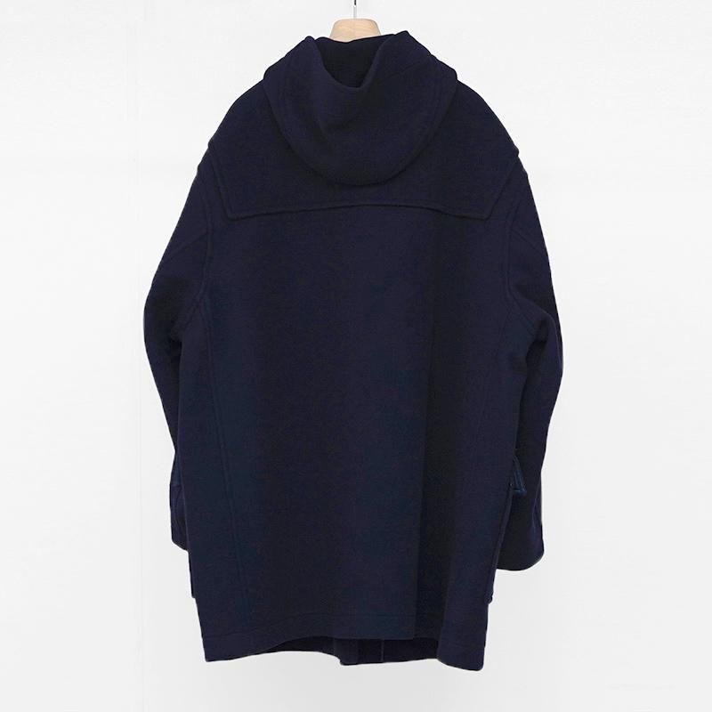 英国ダッフルコートの老舗ブランド「THE MONTGOMERY」が手掛ける、ミドル丈のクラシックダッフル。伝統的な意匠を丁寧に踏襲しつつ、タウンユースで着やすいバランスに仕上げた一着です。 素材はウール85%・ナイロン15%のメルトン生地。適度な厚みとコシのある風合いで、冬のアウターとして十分な保温性を備えています。着丈は長すぎず短すぎないミドル丈で、日常使いに取り入れやすく、合わせるボトムを選ばない点も魅力です。 フロントはブランドを象徴するトグル留め仕様。レザーのループがアクセントとなり、伝統的なダッフルの雰囲気をしっかりと残しています。大きめのポケットや袖口アジャスター、ボタンで調整できるフードまわりなど、機能性を高めるディテールが随所に配置されています。 ロング丈に比べ軽快さがあり、動きやすさと防寒性のバランスが良いモデル。厚手のニットの上からも無理なく羽織れるシルエットで、普段使いから冬のレジャーまで幅広く活躍します。 伝統をそのままに、デイリーに使いやすく整えられたミドル丈のダッフルコート。定番として長く愛用できる一着です。 モデル身長184cm 体重64kg 着用サイズ4 SIZE(cm) 2:着丈86 肩幅54 身幅67 袖丈57 3:着丈91 肩幅58 身幅73 袖丈59 4:着丈94 肩幅61 身幅78 袖丈61 QUALITY WOOL85% NYLON15% 皮革部分:牛革