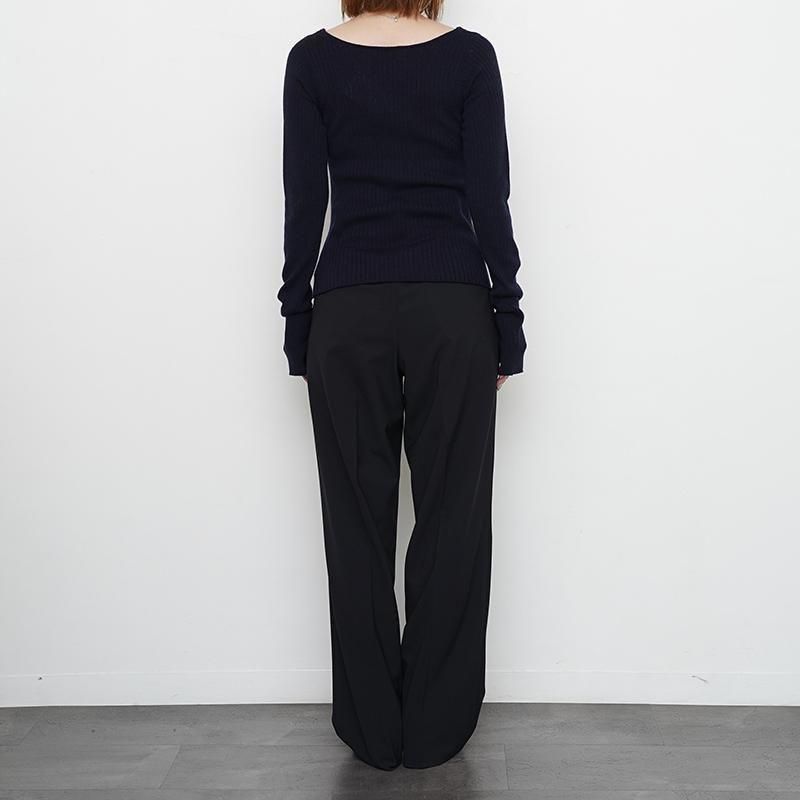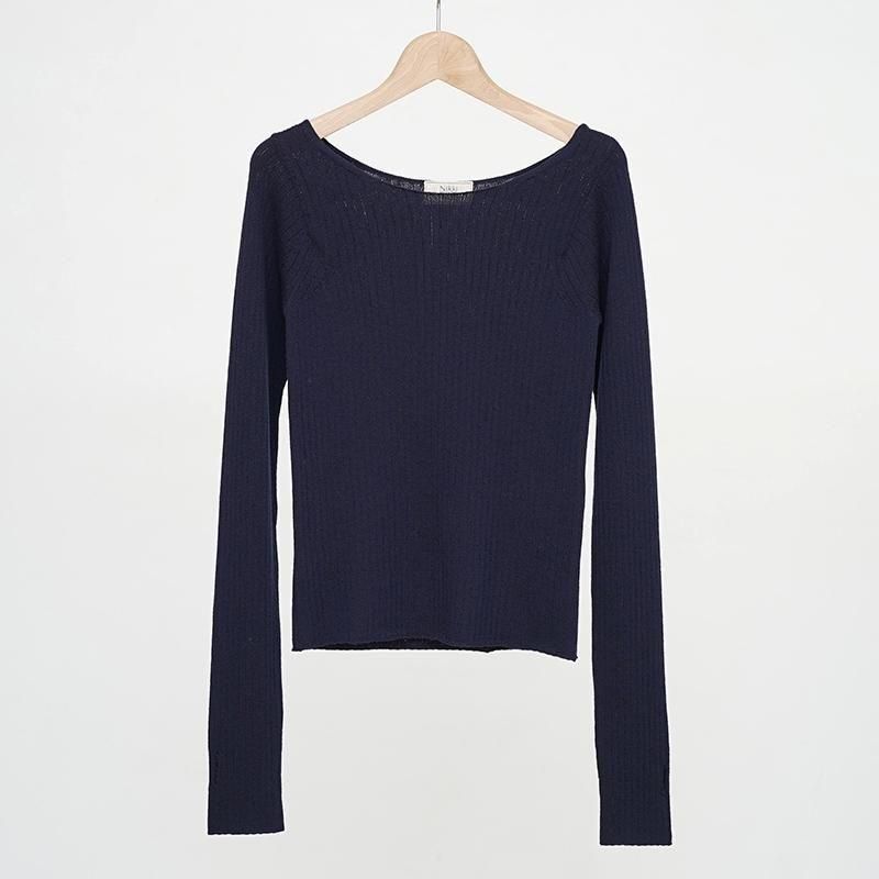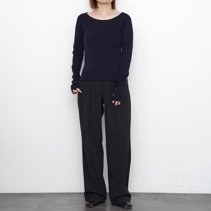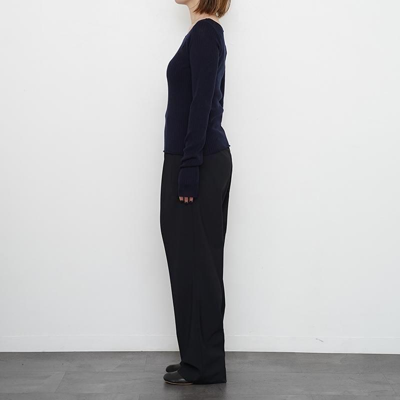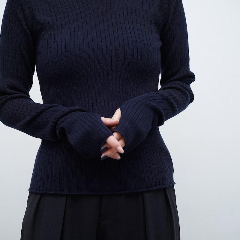 イタリア、ALBINI社のMELBOURNEは梳毛用の繊維長が長いウール原料を綿紡績で紡績したウール100%の糸。ウール原料はSUPER140の防縮加工原料を使用。梳毛のウールとは違い綿紡績で紡績する事により、毛羽の少なく柔らかさがありながらドライでスッキリとした風合いと見え方が特徴ですが風合いは硬くなりすぎず原料の良さはそのまま活かした糸になっており、シーズンレスで着用頂ける素材感。子良くおりではイタリアでしか作れない。ワイドリブのプルオーバー。衿あきを大きくして、インナー的な存在で上や下に重ね着しやすいように。袖口には親指抜きのホールもあり、指抜き手袋のようにも着れる。 モデル身長155cm 着用サイズ0 SIZE(cm) 0:着丈52 肩幅31 身幅34 袖丈68 QUALITY WOOL100%