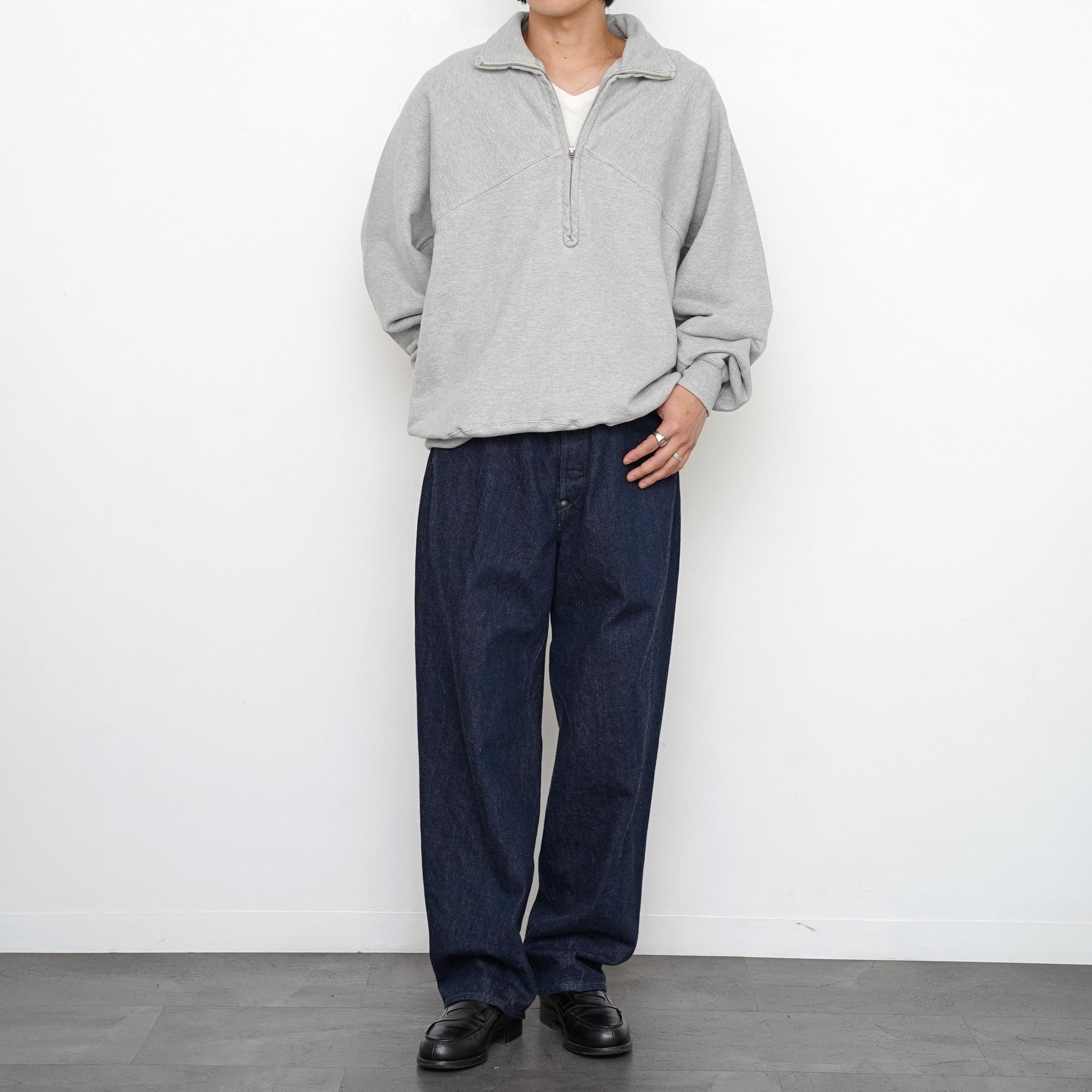 無地のスウェットは毛羽の少ないしっかりした表面感のインレイ素材を別注。適度な重さで高級感のある素材を敢えて製品にした後にヴィンテージ加工することで着込んだこようなムードに仕上げています。 モデル身長173cm 体重59kg 着用サイズ3 SIZE(cm) 3:着丈70 身幅65 裄丈87 QUALITY COTTON100%