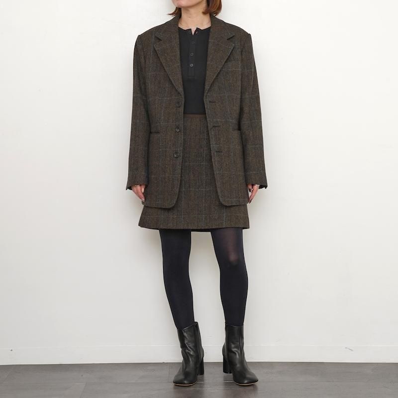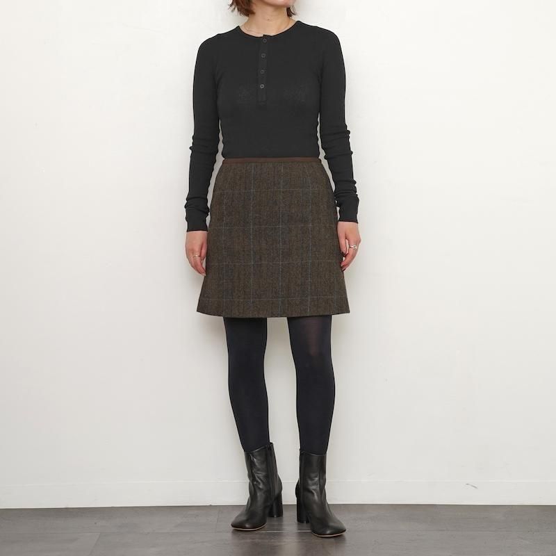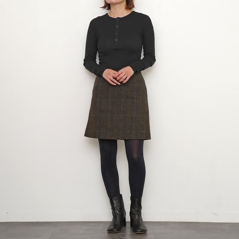 しっかりとした厚みと素朴な風合いを持つウール生地を使ったミニスカート。イギリスサフォーク種とオーストラリアのメリノ種の原毛を国内紡績でブレンドした糸を使い、ダイアゴナル調の綾織りに。ウエストに合皮スウェードでパイピングを施しアクセントに。同素材のジャケットとセットアップで着ていただくものおすすめです。 ※こちらの商品には通常商品と異なるロゴのタグが付きます。 「THE SHINZONE」タグ=生地や縫製にこだわった、1ランク上のスペシャルなオリジナル商品 モデル身長155cm 着用サイズ34 SIZE(cm) 34:ウエスト69 着丈42 QUALITY WOOL 100%