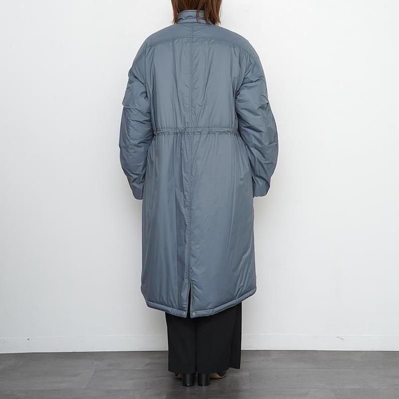 腕の可動を快適に行えるよう、身頃と袖に縫い目のない変形ドルマンスリーブパターンを考案。肘部分にはタックを入れることで肘を曲げやすい構造に。大容量の内ポケットを配置し、ハンズフリーでアクティブな活動が可能。 超撥水軽量ナイロンリップストップ 小松マテーレ独自の「ダントツ撥水」を採用。繰り返して洗濯しても撥水性を損なわない特性を持ち、裏面には透湿性・防風性に優れた「サイレントコーティング」を施すことで、衣服内の環境を快適に保つ。 中綿:プリマロフト133g使用。 【スタッフコメント】 今シーズンも登場したPHEENYのハイスペックアウター。 M65をベースに女性が着やすいシルエットを実現した一着です。 小柄な方でも着ぶくれ感なく、スッキリとした印象で動きやすさも抜群。 発熱効果のある中綿を使用しており軽量で暖かさも感じられるので寒い季節の必需品としてぴったり。 デイリー使いに最適なアウターをお探しの方におすすめです。 モデル身長155cm 着用サイズ2 SIZE(cm) 2:着丈前106 着丈後113 身幅57 裄丈74 QUALITY NYLON100% 中綿:POLYESTER100%