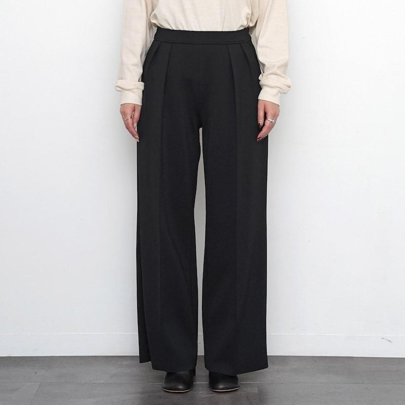 定番のアムンゼンワイドパンツ。すとんと綺麗に落ちるワイドストレートにセンタークリースを加え、縦ラインをスッキリ引き立てるデザイン。洗濯後も型崩れしにくく、速乾性を備えた万能パンツ。裾は断ち切り仕様でセルフカットが可能、好みの長さに調整できるのもポイント。 ストレッチ性のあるポリエステル加工糸とポリウレタン糸を使用し、度詰めで編み立てたアムンゼン。表面は梨地調に編まれ、ランダムな凹凸のシボ感を表現。洗濯後も型崩れしにくく、速乾性も兼ね備えている。ストレッチ性による着用しやすさが特徴。 【スタッフコメント】 PHEENYの数あるアイテムの中でも長く愛されているアムンゼンシリーズ。 脚のラインを美しく見せてくれながら、履き心地はジャージを履いているような快適さ。 自宅でのケアも出来るのでクローゼットにあると自然と手に取るシーンが多くなる1本です。 普段使いはもちろん旅行などの移動時にも個人的に選ぶことが多いです。 同素材のジャケットとのセットアップもおすすめです。 モデル身長155cm 着用サイズ1 SIZE(cm) 1:ウエスト66 股上29.5 股下70 裾幅27 2:ウエスト68 股上30 股下72 裾幅28 QUALITY POLYESTER98% POLYURETHANE2%