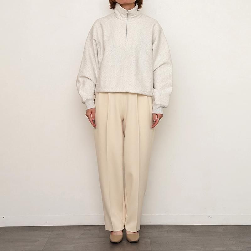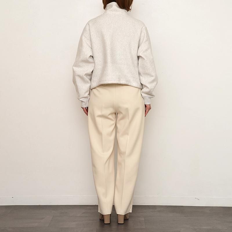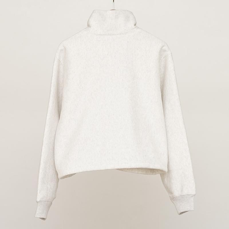 定番のハイネックフロントジッププルオーバーをショート丈にアップデート。裾のスピンドルでシルエットを調整でき、好みのバランスに仕上げられる一着。PURPLEは製品加工を施し、ユーズド感をプラス。 表面にコットン、中糸と裏糸にピリングになりづらいポリエステル糸を使用した裏毛。ボリューム感がありながら驚くほど軽量で、裏起毛により保温性が高く、柔らかな肌触り。速乾性があり、便利で扱いやすく、デイリーユースに最適な素材。 【スタッフコメント】 ヴィンテージライクなスウエットをお探しの方にピッタリな1着。素材はまるで古着屋さんで見つけたかのような独特な風合いでまさに「これ!」感が強いアイテムです。 コンパクトなサイジングは今のトレンドにもぴったりで旬なムードを演出してくれます。 驚くほど軽く、暖かさの抜群。 さらにケアが簡単なので、日常生活に自然と馴染んでくれます。 これからの季節の手放せない1着に。 モデル身長155cm 着用サイズF SIZE(cm) F:着丈51 肩幅46 身幅55 袖丈56 QUALITY COTTON60% POLYESTER40% RIB:COTTON100%