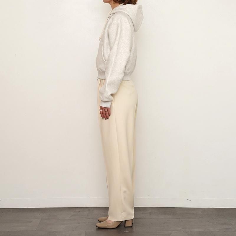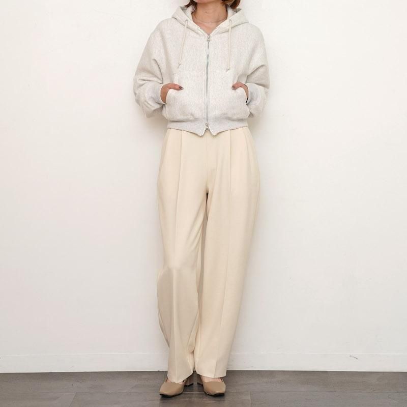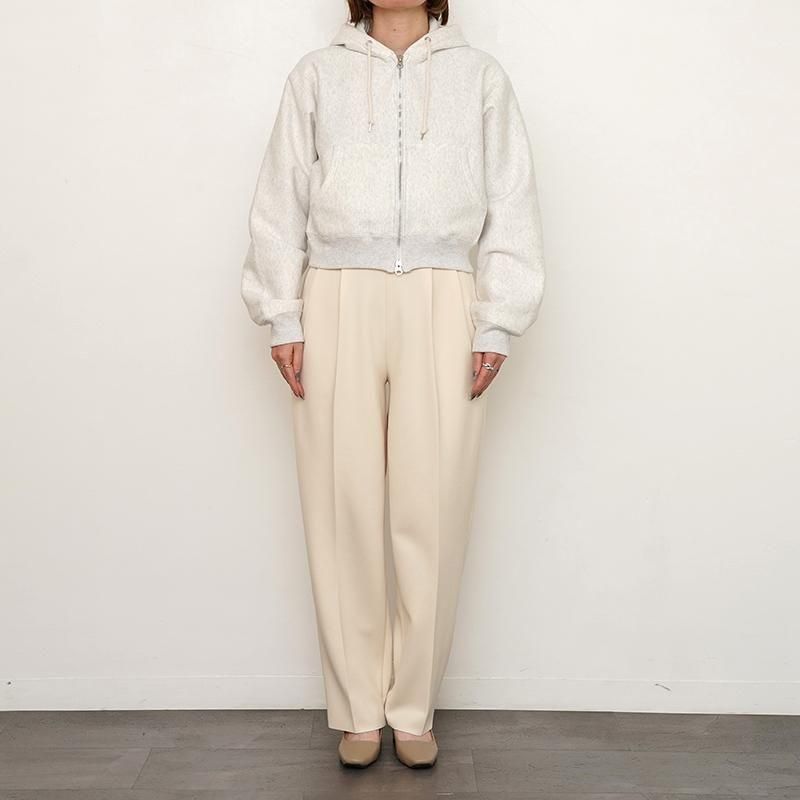 コンパクトなシルエットのジップアップパーカー。羽織りとしてはもちろん、アウターのインナーとしても活躍し、幅広いスタイルに取り入れやすいアイテム。PURPLEは製品加工を施し、ユーズド感をプラス。 表面にコットン、中糸と裏糸にピリングになりづらいポリエステル糸を使用した裏毛。ボリューム感がありながら驚くほど軽量で、裏起毛により保温性が高く、柔らかな肌触り。速乾性があり、便利で扱いやすく、デイリーユースに最適な素材。 【スタッフコメント】 ヴィンテージライクなスウエットをお探しの方にピッタリな1着。素材はまるで古着屋さんで見つけたかのような独特な風合いでまさに「これ!」感が強いアイテムです。 コンパクトなサイジングは今のトレンドにもぴったりで旬なムードを演出してくれます。 驚くほど軽く、暖かさの抜群。 さらにケアが簡単なので、日常生活に自然と馴染んでくれます。 これからの季節の手放せない1着に。 フルジップ仕様で早い時期から羽織りとして活躍してくれます。 モデル身長155cm 着用サイズF SIZE(cm) F:着丈47 肩幅46 身幅51 袖丈57 QUALITY COTTON60% POLYESTER40% RIB:COTTON100%