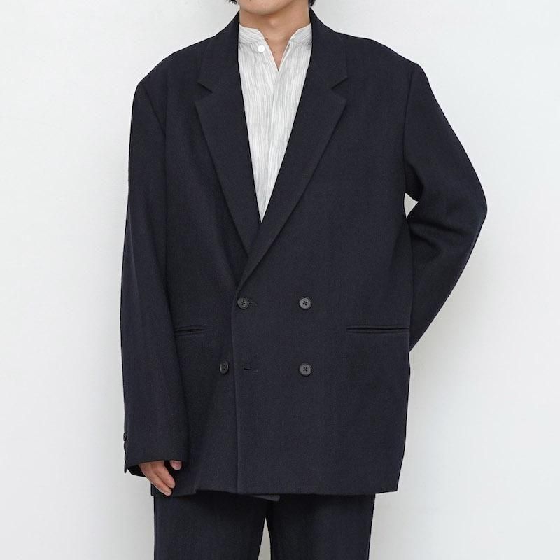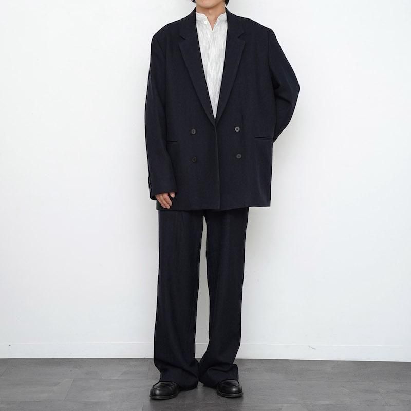 ヴィンテージ感を演出する粗めのヘリンボーン生地を使用した、定番のテーラードジャケット。 衿のピックを省くことでリラックスした印象に仕上げています。ホーンボタンを採用し、外側に2つ、内側に1つのポケット付き。 カップロ素材の裏地で、袖裏にはストライプ柄をあしらいました。衿裏には日本の藍染を施したネップコットンを使用。 ゆったりとしたシルエットで、クラシックながらも程よく力の抜けたスタイルを楽しめます。 モデル身長173cm 体重59kg 着用サイズ2 SIZE(cm) 2:着丈81 肩幅48 身幅57 袖丈65 3:着丈82.5 肩幅48 身幅59 袖丈67 QUALITY WOOL100% OTHERS:COTTON100% LINING:CUPRO100%
