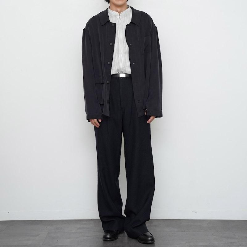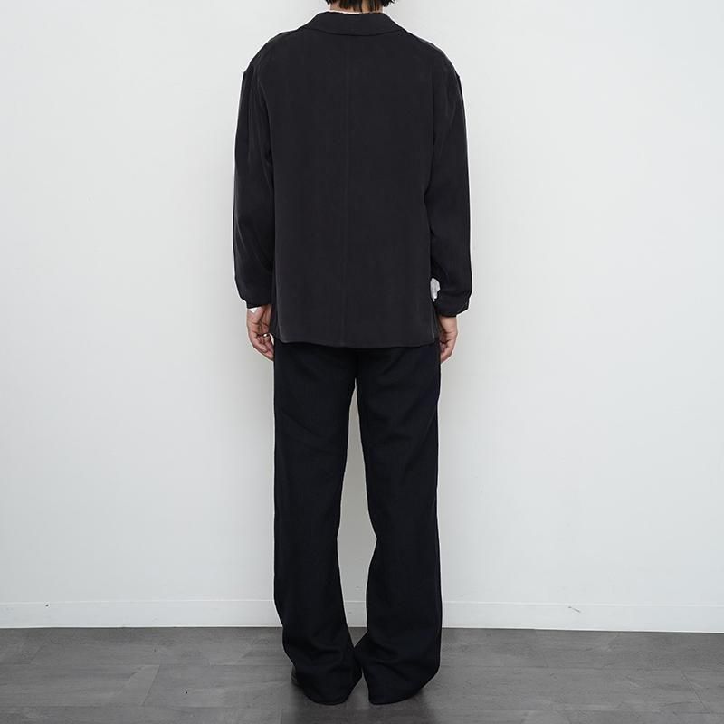 ヴィンテージ感のある厚手で落ち感のあるキュプラ素材を使用した、ソフトなシャツジャケット。 衿はわずかに独立したデザインで、衿のステッチや立体的なスフレポケット、胸の小さなポケットが特徴です。 袖先はタック入りで細身のカフスに仕上げ、ホーンボタンを採用。ワンピース仕立てで、リラックス感のあるシルエットに。 クラシックなワークウェアの雰囲気を取り入れつつ、上品に着こなせる一着です。 モデル身長173cm 体重59kg 着用サイズ2 SIZE(cm) 2:着丈72 肩幅54 身幅56 袖丈60 3:着丈74 肩幅55 身幅60 袖丈61.5 QUALITY CUPRO100%
