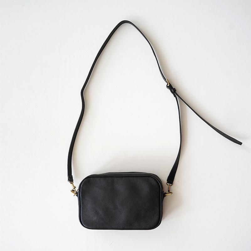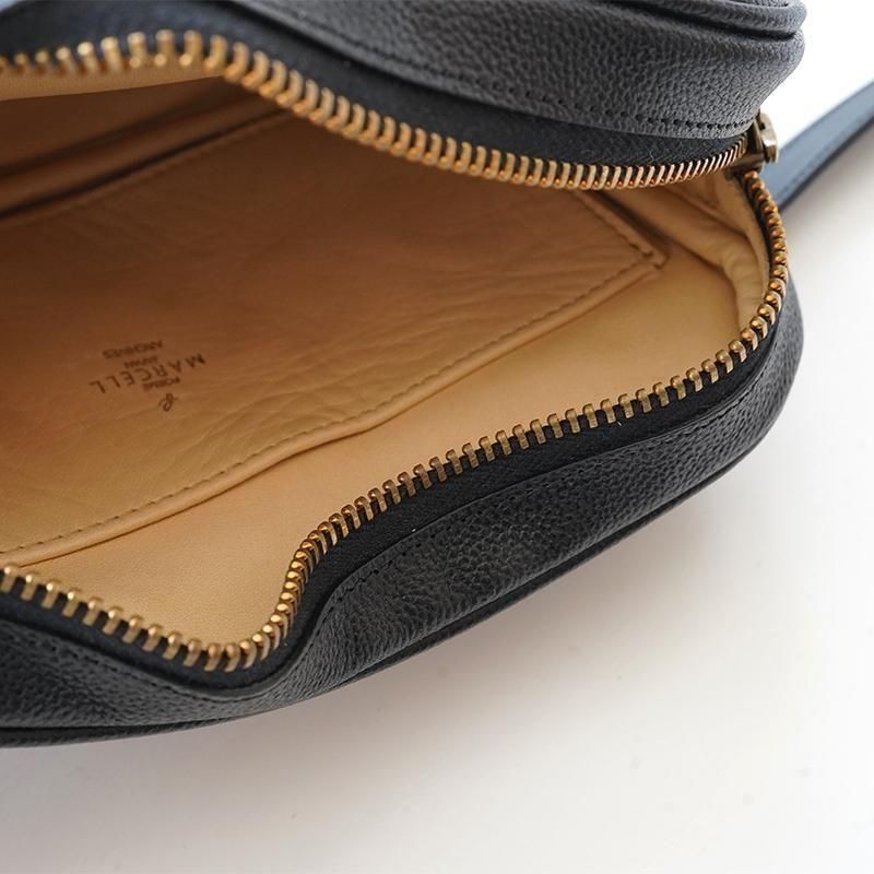 丸みのあるフォルムが特徴的な、コンパクトなショルダーバッグ「Marcel(マルセル)」。 年代や性別を問わず、長く愛されてきたクラシックなバッグの魅力に着目し、それを現代的なプロダクトへと昇華させた一品です。 無駄を省いたシンプルな構造と、タフで耐久性の高い素材感により、日常使いに最適。 ジェンダーレスで取り入れやすく、幅広いスタイルにフィットします。 ビンテージ感が漂う金具を採用しているのも、formeのこだわりを感じさせます。 今季は、表革にカーフレザー「Siena(シエナ)」を使用。 上品なシボ感に加え、カウレザー特有のハリと光沢があり、しなやかさと力強さを兼ね備えた革質が特徴です。 その質感は繊細でありながらも存在感があり、スタイリングに大人っぽさと奥行きを加えてくれます。 ショルダーストラップはベルト仕様で長さ調整が可能。 取り外しもできるため、気分やスタイリングに合わせた使い分けが可能です。 程よいサイズ感で、ちょっとしたお出かけやコーディネートのアクセントにも最適。 シンプルな装いを格上げしてくれる、formeらしい品格のあるショルダーバッグです。 SIZE(cm) F:縦14 横21 マチ5 ハンドル109 QUALITY Siena