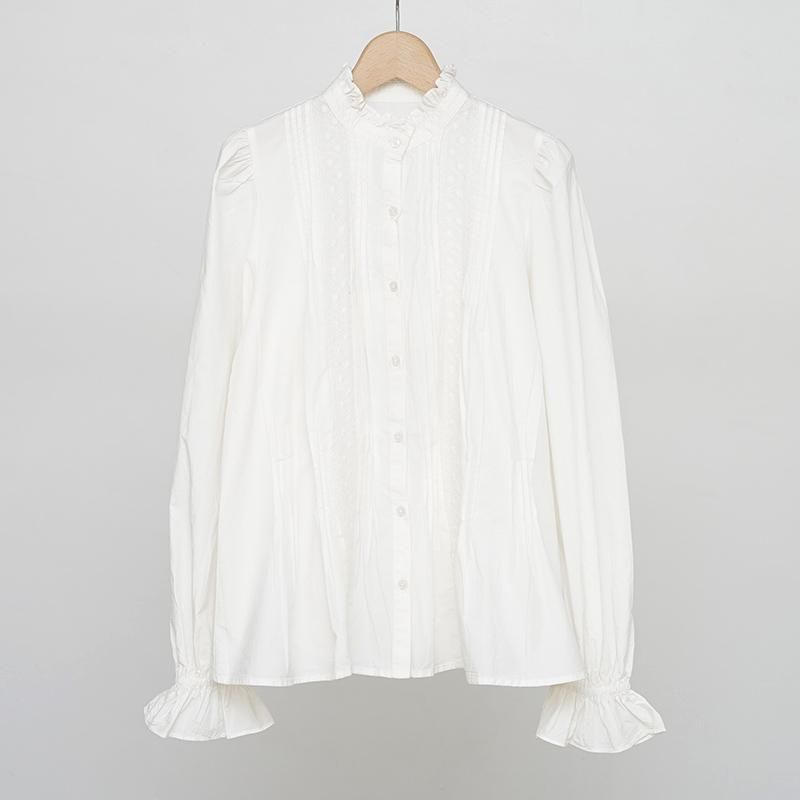 【11/7(金)19:00販売開始】【2025 A/W】【crinkle crinkle crinkle】rebuilt neck embroidery blouse WHITE
