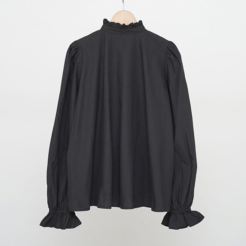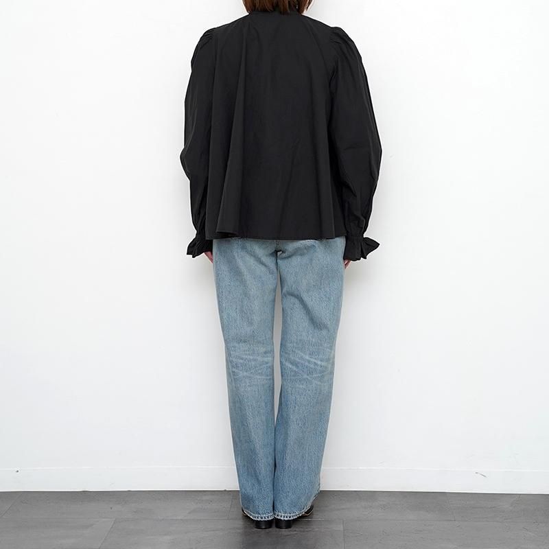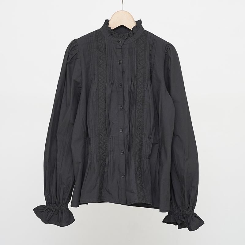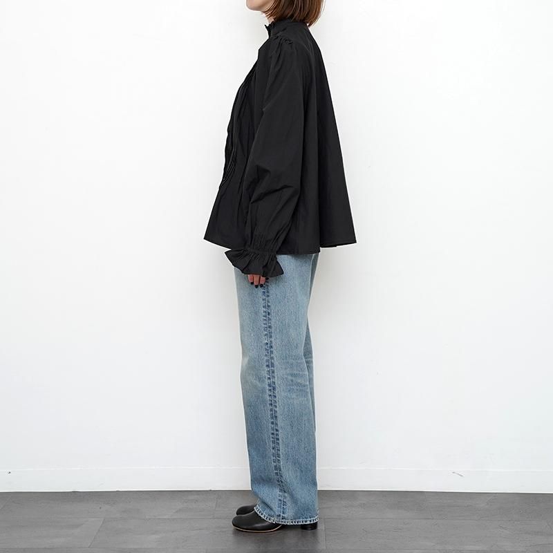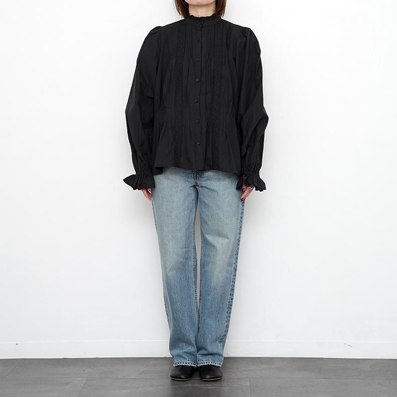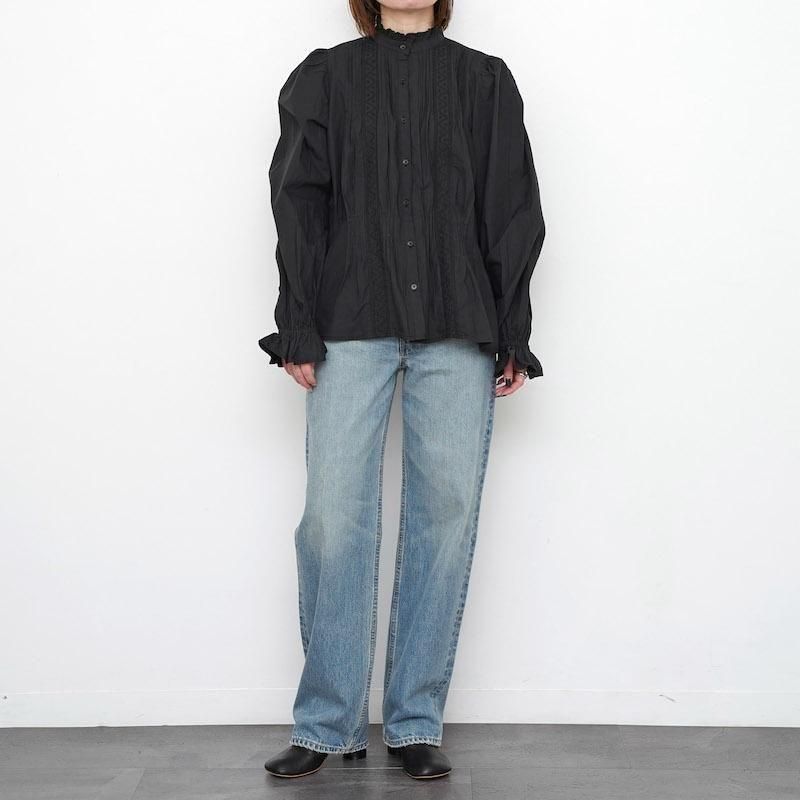 ヴィンテージのブラウスをインスピレーションにし、現代のスタイルに合わせたシルエットでお作りしました。 ウエストは程よく絞られていて、ボリュームのあるボトムや羽織りなどのレイヤードもバランスよく着ていただけます。 ピンタック・刺繍とヴィンテージに多用されるテクニックで装飾した crinkle crinkle crinkleらしいブラウスをお楽しみください。 モデル身長155cm 着用サイズF SIZE(cm) F:着丈62 肩幅33 身幅50 袖丈65 QUALITY COTTON100% 刺繍糸:POLYESTER100%