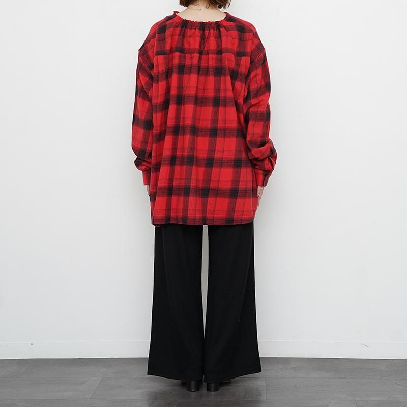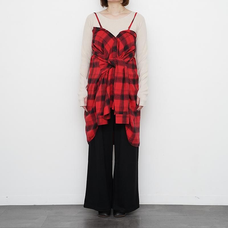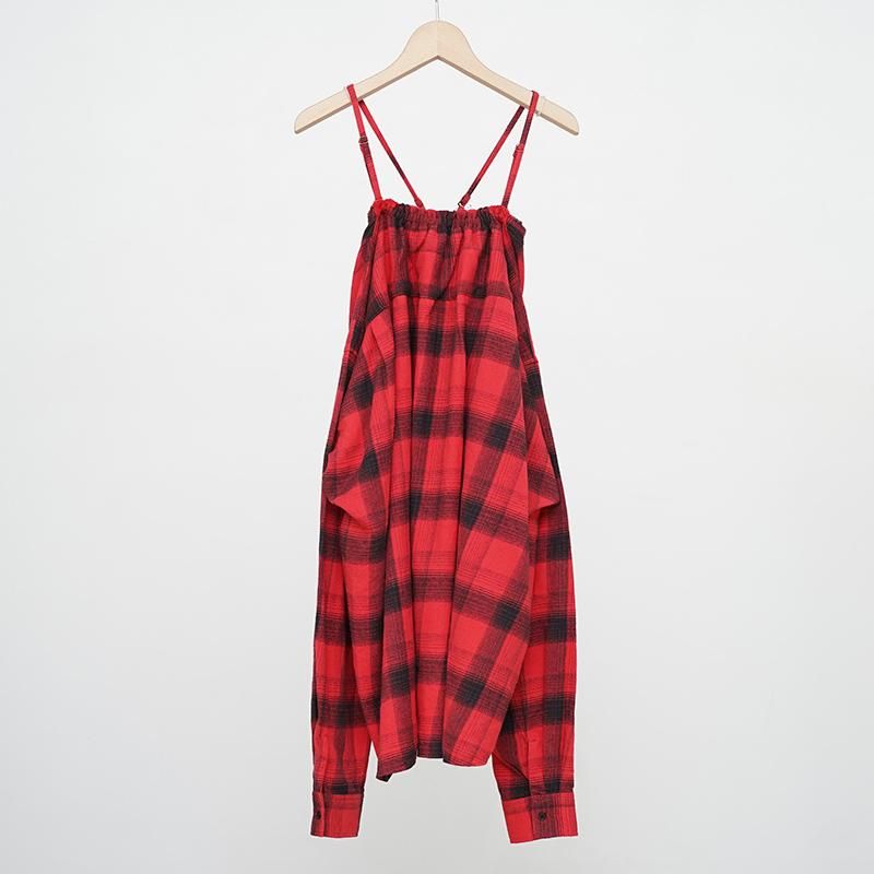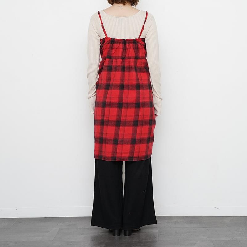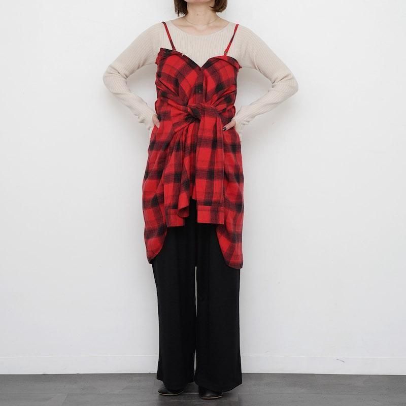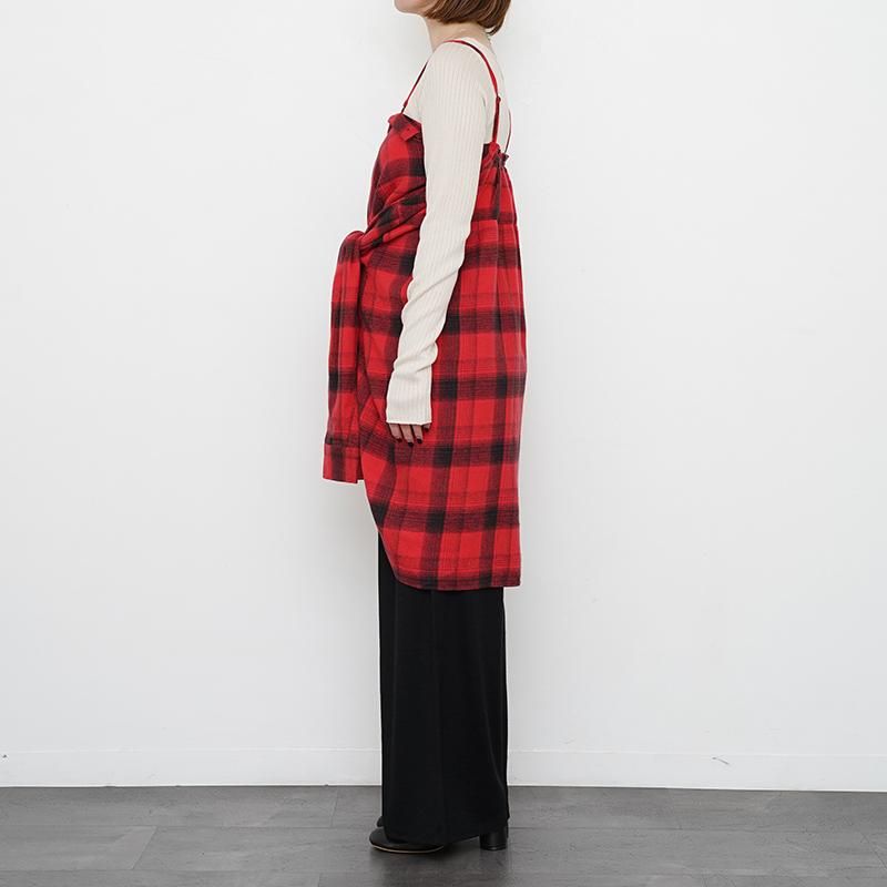 アメリカンカジュアルを代表するコットンネルチェックを採用しお作りしたビスチェです。 アメリカンカジュアルの代表アイテムであるネルシャツを胸元に巻き付けるスタイリングをそのまま表現したアイテムです。 袖を通すとシャーリングブラウスに。 腰に巻くとスカートとしてレイヤードアイテムにも変化し、着方によっていろいろなスタイルを予見させるアイテムです。 モデル身長155cm 着用サイズF SIZE(cm) F:着丈前69後75肩幅53身幅60袖丈64 QUALITY COTTON100%