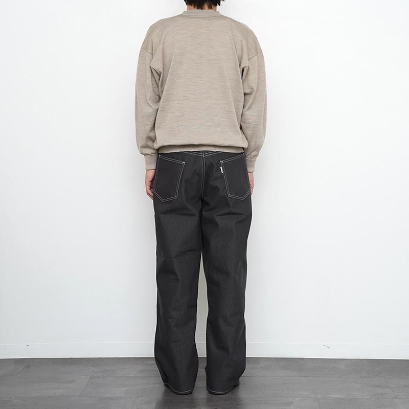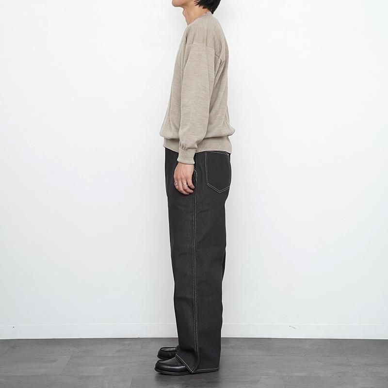 ゆったりとした身幅に対して、着丈はやや短めに設計され、重心が上がることで自然とバランスの良いシルエットに仕上がります。