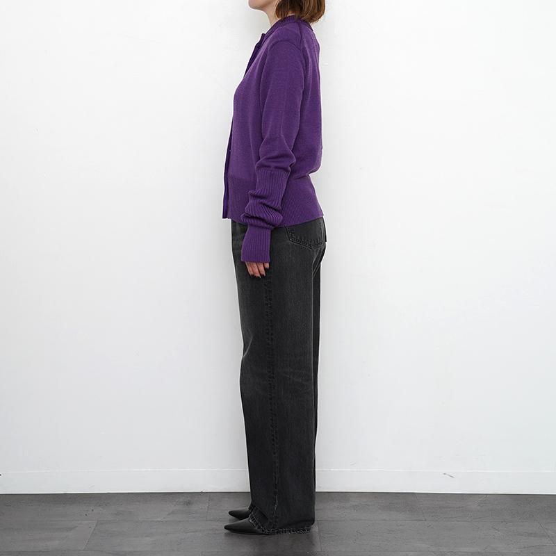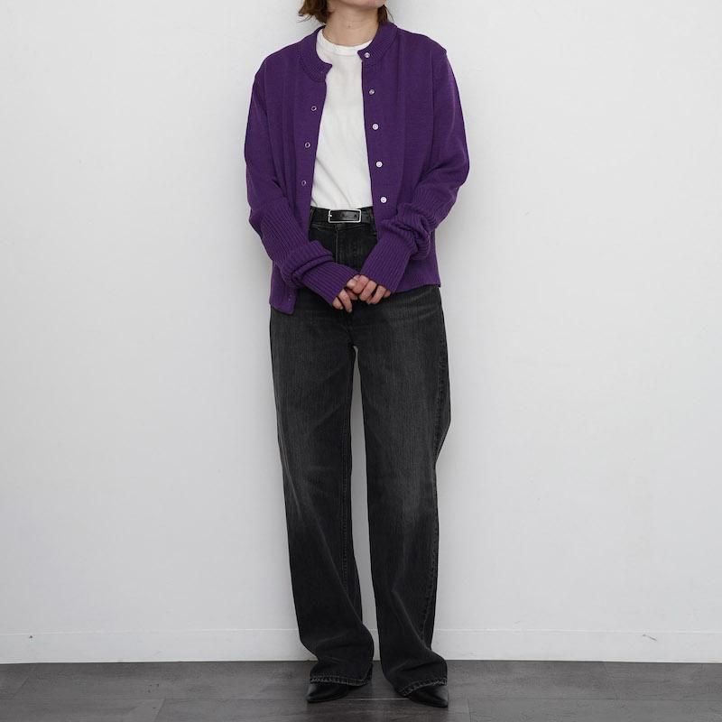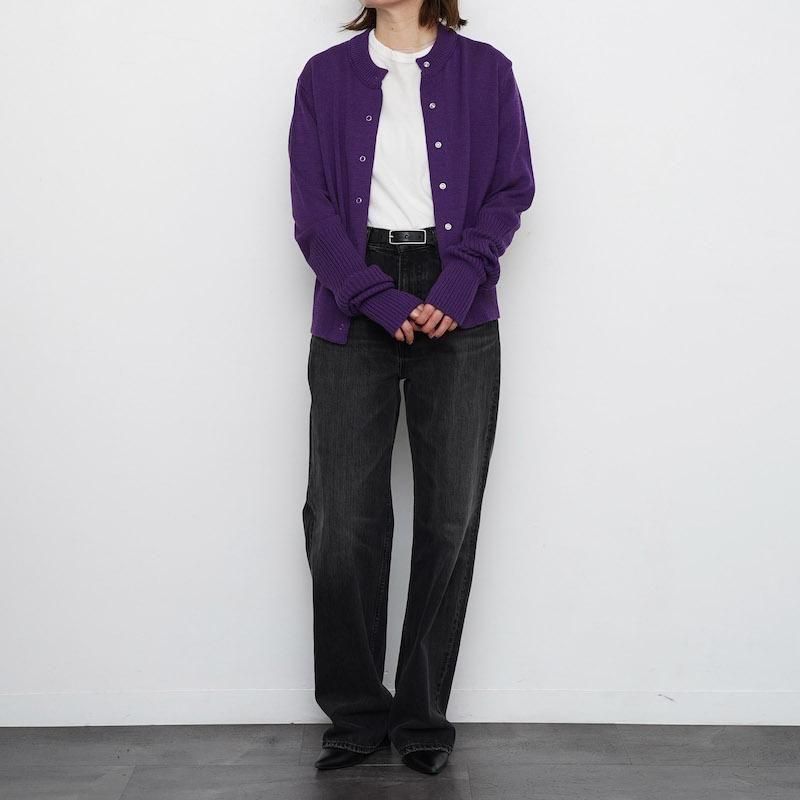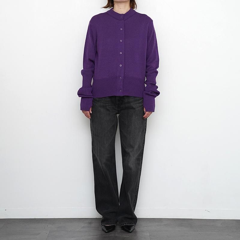 ロンググローブを手にはめているかのような、とっても長い袖のリブが特徴的なLONG RIB CARDIGAN。 いろんなアイテムのアクセントとして合わせられるよう、コンパクトめのサイジングに。コートやジャケットの袖からのぞかせても可愛いし、オーバーサイズなスウェットやシャツの中に合わせたレイヤードにも◎ モデル身長155cm 着用サイズF0 SIZE(cm) F0:着丈55 肩幅42 身幅50 袖丈76 QUALITY POLYESTER57% WOOL43%