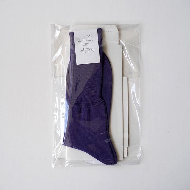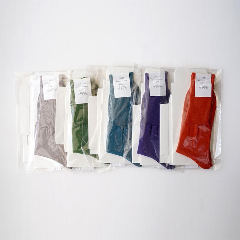 Olde H & Daughterが手がけるコットンソックスは、まず触れたときの心地よさが印象に残ります。 選び抜いた綿糸を細やかに編み立て、肌にあたる質感がやわらかく、日常の動きに自然に寄り添ってくれる仕上がりです。 厚みは季節を問わず使いやすいバランスで、スラックスにもデニムにも合わせやすい汎用性があります。 つま先部分はハンドリンキングによる丁寧な縫製で、縫い目のあたりが出にくく、長時間履いても疲れにくいのが魅力。足首のリブも過度に締めつけず、ほどよいフィット感を保つよう設計されています。 豊富なカラーバリエーションは、気分や装いに合わせて選べるのが嬉しいところ。落ち着いた色から鮮やかなトーンまで幅広く揃っており、日常のアイテムとして自然に取り入れられます。 さりげなく質のよさが伝わる一足。自分用にはもちろん、ちょっとした贈り物にもオススメです。 画像3枚目:DUSKEE 画像4枚目:MOSS 画像5枚目:TEAL 画像6枚目:HUNTINGPINK 画像7枚目:BLUEBERRY SIZE(cm) FREE QUALITY COTTON100%